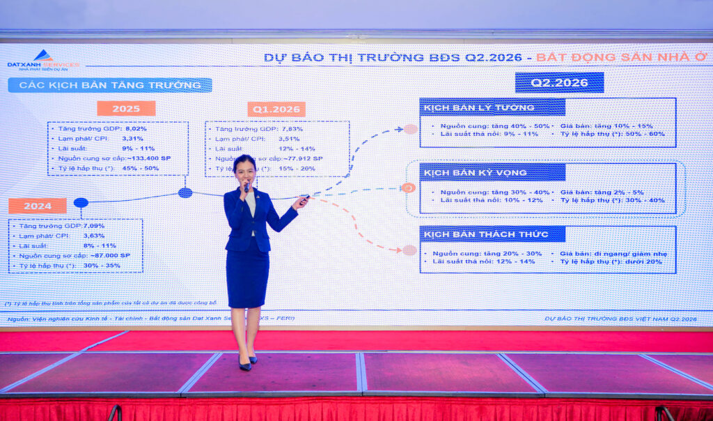 Bước sang Quý 2.2026, thị trường bất động sản được dự báo không tiếp tục đà suy giảm mà duy trì trạng thái phát triển cục bộ và theo hướng chọn lọc. Theo DXS-FERI, nguồn cung mới dự kiến đạt khoảng 22.000 sản phẩm, nâng tổng nguồn cung sơ cấp toàn thị trường lên gần 100.000 sản phẩm.