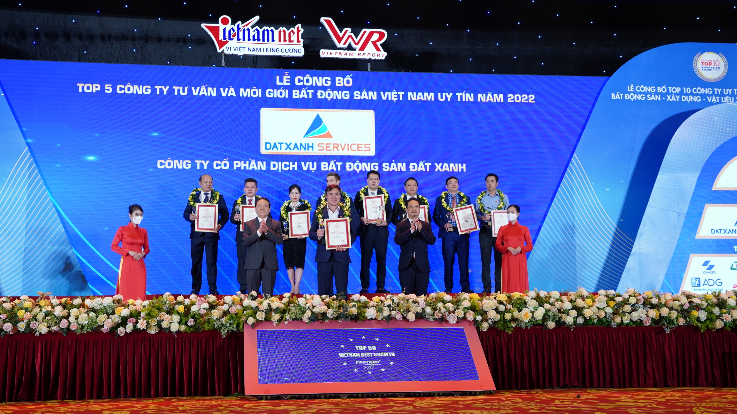 Nhờ những nỗ lực không ngừng, Dat Xanh Services đã nhận được các giải thưởng như: Giải thưởng Doanh nghiệp xuất sắc châu Á 2022, Giải thưởng Thương hiệu truyền cảm hứng 2022 do APEA trao tặng; Top 5 Công ty Tư vấn và Môi giới BĐS Việt Nam uy tín năm 2022 do Vietnam Report công bố; “Top 500 Doanh nghiệp lợi nhuận tốt nhất Việt Nam năm 2022” do Công ty Cổ phần Báo cáo Đánh giá Việt Nam (Vietnam Report) phối hợp với báo điện tử Vietnamnet công bố; Giải thưởng Nơi làm việc tốt nhất châu Á 2022 do HR Asia trao tặng, …