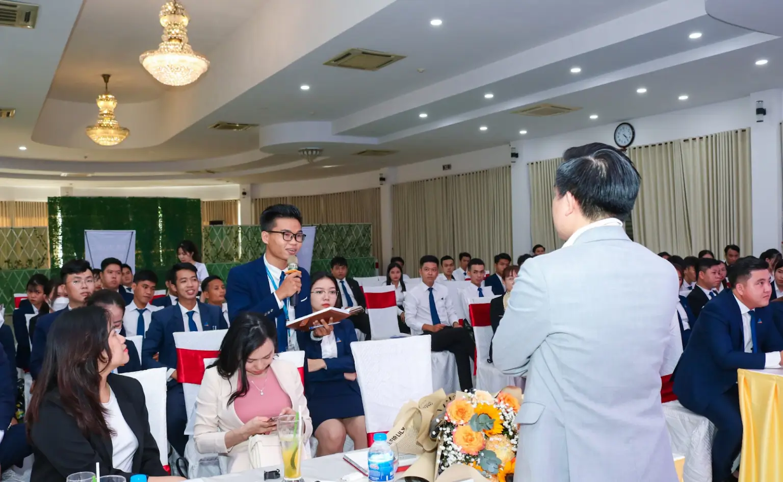 Trong khuôn khổ sự kiện, ông Bùi Đức Anh – GĐKD Meyland và bà Trương Ngọc Châu – GĐ dự án Meyhomes Capital Crystal City đã có những chia sẻ chi tiết về tổng quan thị trường, các thông tin về dự án, những bí kíp chốt deal thần tốc cũng như các chính sách thưởng nóng hấp dẫn, làm tăng thêm nhuệ khí của các chiến binh kinh doanh.