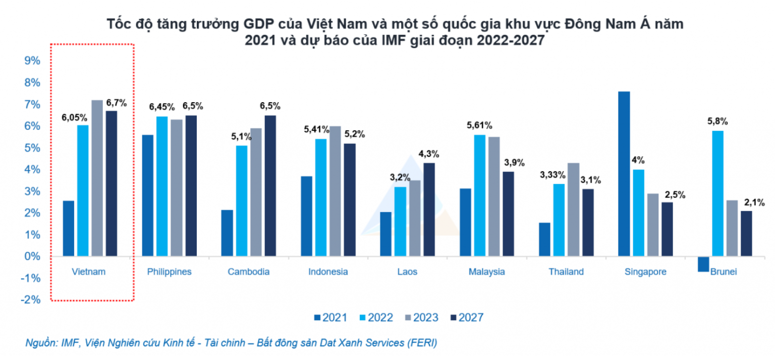 So với các quốc gia khác trong khu vực Đông Nam Á, dự báo tăng trưởng GDP của Việt Nam năm 2022 đứng thứ hai trong khu vực, chỉ thấp hơn Philippines với mức tăng trưởng được dự báo đạt 6,45%.