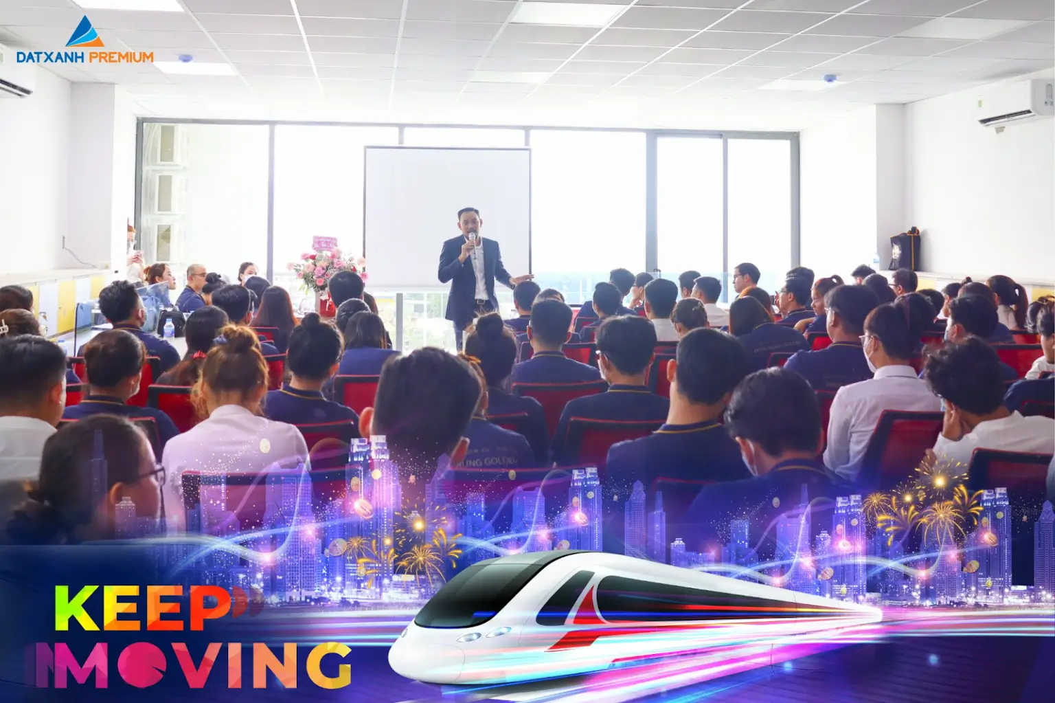 Ngày 2/8/2022, Dat Xanh Premium – thành viên Dat Xanh Services đã tổ chức buổi Training đặc biệt dành cho toàn thể CBNV Công Ty. Kiến thức sâu rộng cùng khả năng truyền tải đầy cảm xúc của Ban Lãnh Đạo Cấp Cao cùng với đó là nhiều chính sách đặc biệt chỉ dành riêng cho các chiến binh của Dat Xanh Premium đã mang đến cho buổi đào tạo một không khí sôi động và hào hứng.