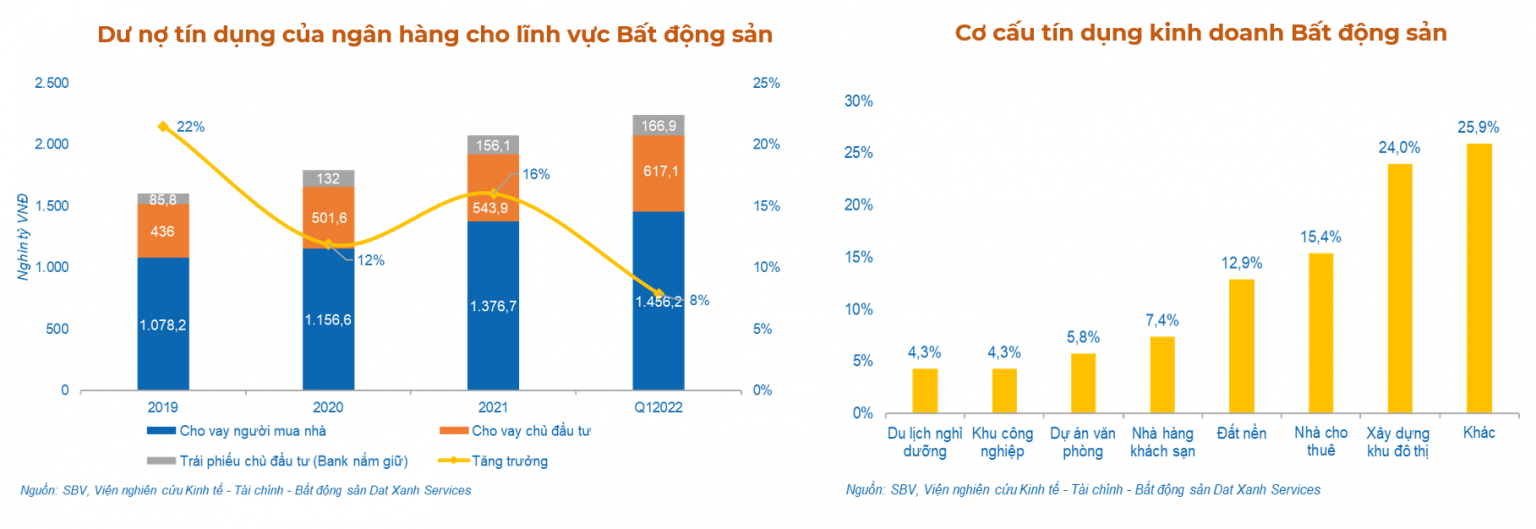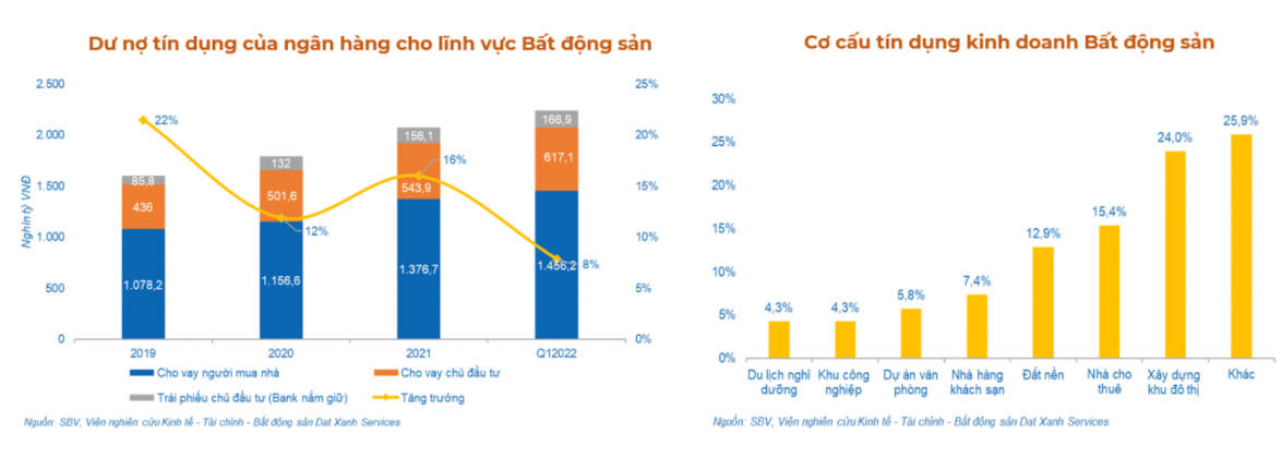 Về dư nợ tín dụng trong lĩnh vực Bất động sản, Tính đến cuối tháng 4/2022, tổng dư nợ đối với lĩnh vực bất động sản của TCTD đạt 2.288.278 tỷ đồng, tăng 10,19% so với cuối năm 2021, chiếm tỷ trọng 20,44% trong tổng dư nợ đối với nền kinh tế.