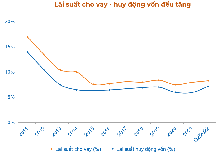 Về mặt bằng lãi suất, lãi suất huy động tăng 0,1 – 0,3%/năm, lãi suất cho vay tăng từ 1-1.5%.