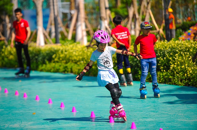 Cũng trong ngày khai trương, nhiều khu khu vui chơi, giải trí như khu trò chơi trẻ em, sân trượt patin, khu trò chơi trên cát, sân trượt cát… cũng liên tục thu hút đông đảo trẻ em và người lớn cùng tham gia.