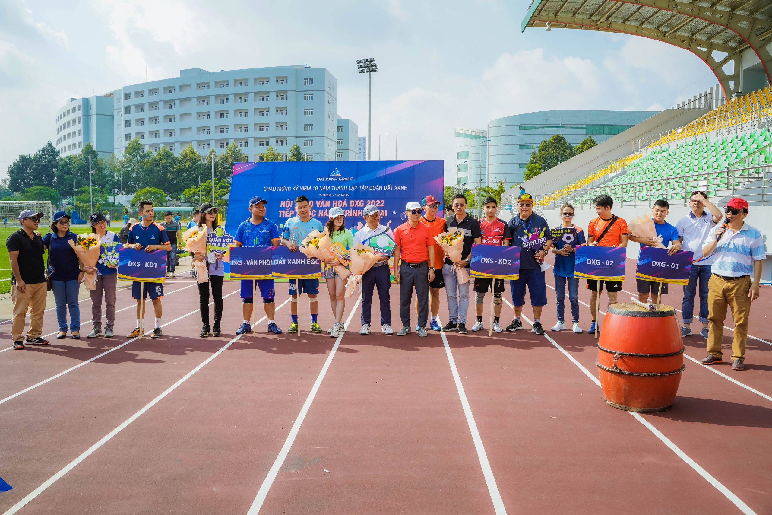 Trong buổi lễ khai mạc, ngoài sự tham gia của VĐV các bộ môn còn có sự xuất hiện của Ban lãnh đạo Tập đoàn và những lời nhắn nhủ, động viên đầy nhiệt huyết từ ông Bùi Ngọc Đức – Tổng Giám đốc Tập đoàn Đất Xanh: “Hội thao Văn hóa Đất Xanh 2022 là một hoạt động thiết thực không chỉ để khẳng định thể lực và trí lực của tập thể Người Đất Xanh mà còn là hoạt động để Ban lãnh đạo cùng CBNV Tập đoàn và hệ thống các CTTV gìn giữ và phát huy những giá trị tốt đẹp nhất của Người Đất Xanh. Vậy nên, chúng ta hay giương cao ngọn cờ của ý chí và khát vọng, quyết tâm thi đấu hết mình để dành chiến thắng tất cả các bộ môn.”