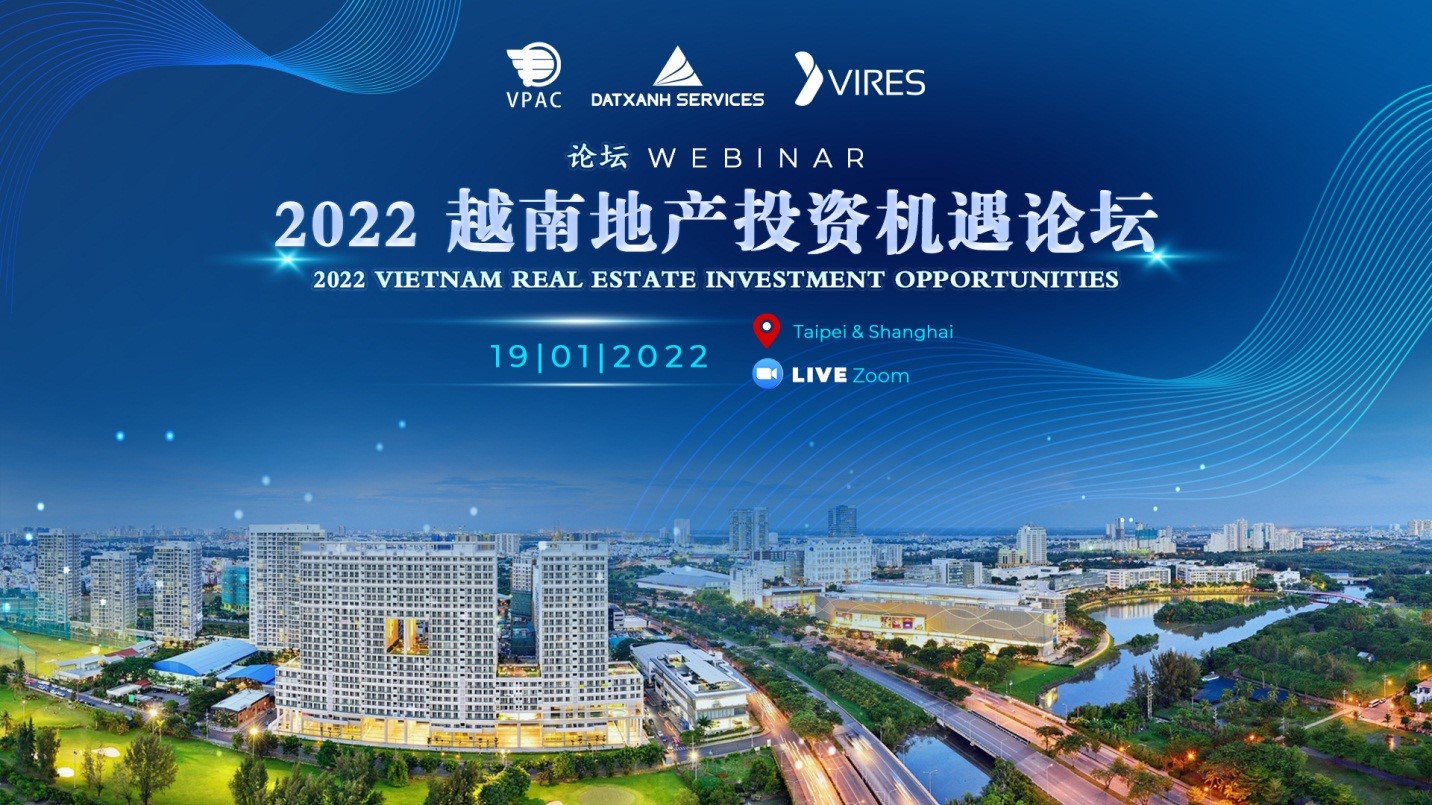 Hội thảo bất động sản với chủ đề “Cơ hội đầu tư của thị trường bất động sản Việt Nam” được VPAC Capital (Quỹ đầu tư bất động sản đa quốc gia) và VIRES đồng tổ chức dưới hình thức trực tuyến kết hợp trực tiếp tại 3 đầu cầu: TP. Thượng Hải (Trung Quốc), TP. Đài Bắc (Đài Loan) và TP.HCM (Việt Nam).